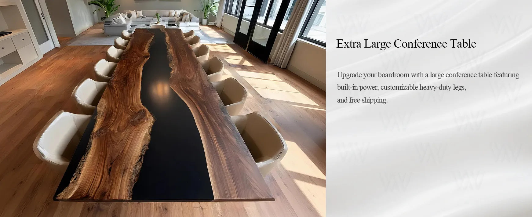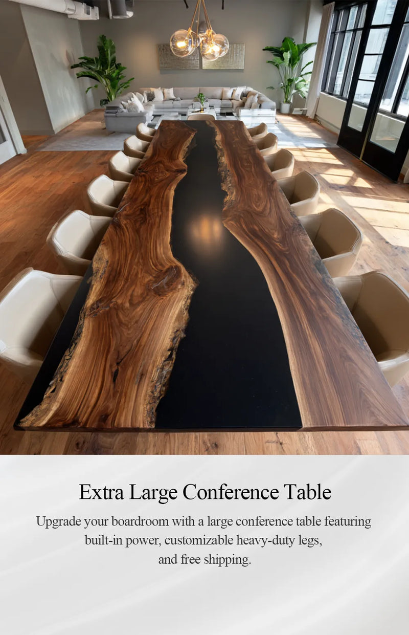 View full detailsCrafted from premium solid black walnut wood, this extra large epoxy conference table is designed for modern executive spaces that demand both pres...
