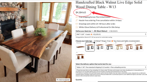 WorldcustomtableWood Type:Walnut Size: 36"W×82"LOriginal Price: $3019Discount for you: $500 offYou can use coupon W500, bringing the final price to $3,416.2, which...