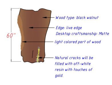 Size: 60‘’L×32‘’W×1.97''D Material: Black Walnut Edge: Live Edge