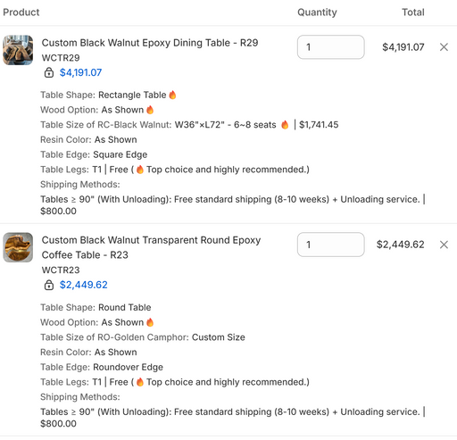 Premium North American black walnut is paired with deep black epoxy resin in a handcrafted design that showcases natural wood grain and modern eleg...