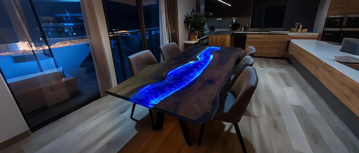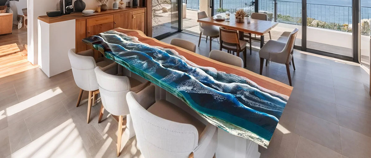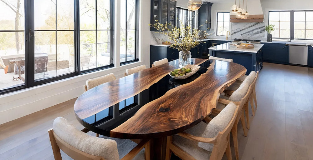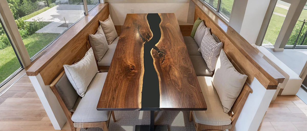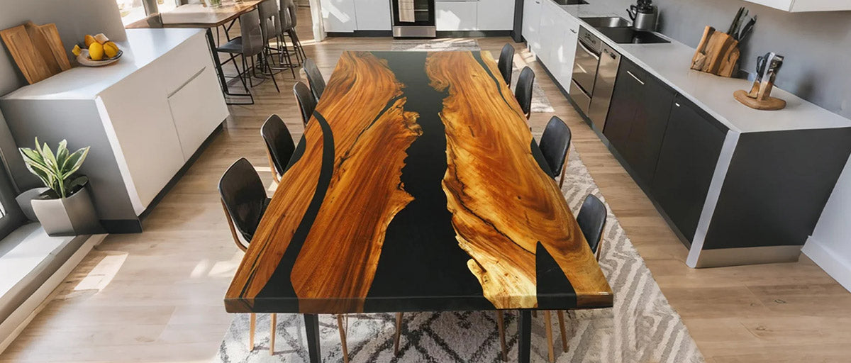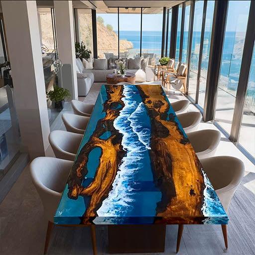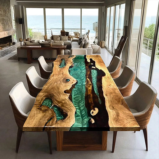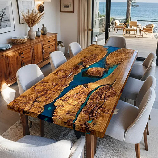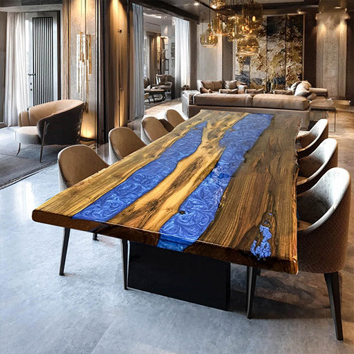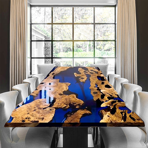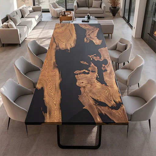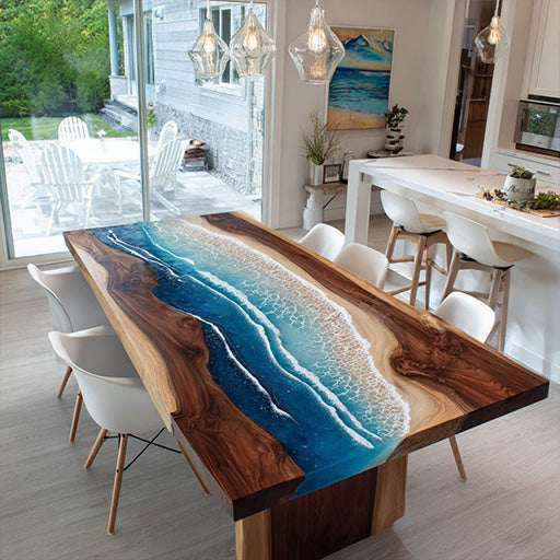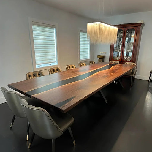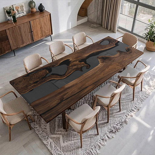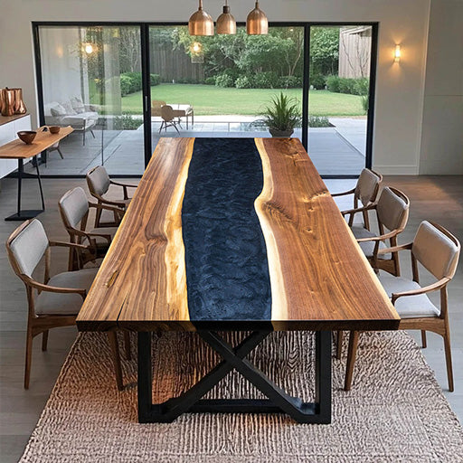 View full detailsBlack Walnut Epoxy Ocean Table for Dining Room - A28