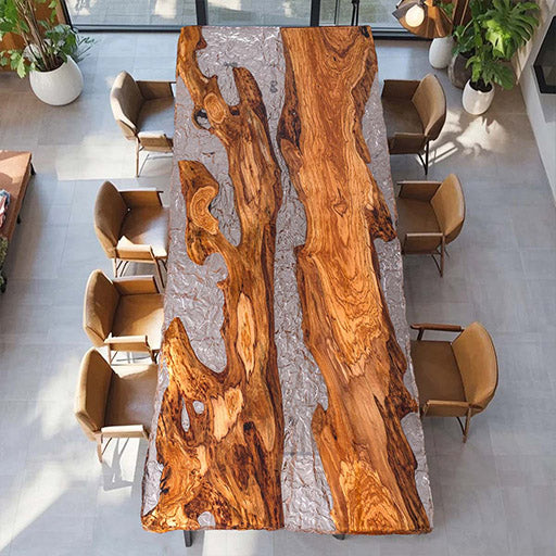 View full detailsLive Edge Black Walnut Green Epoxy River Dining Table - A66
