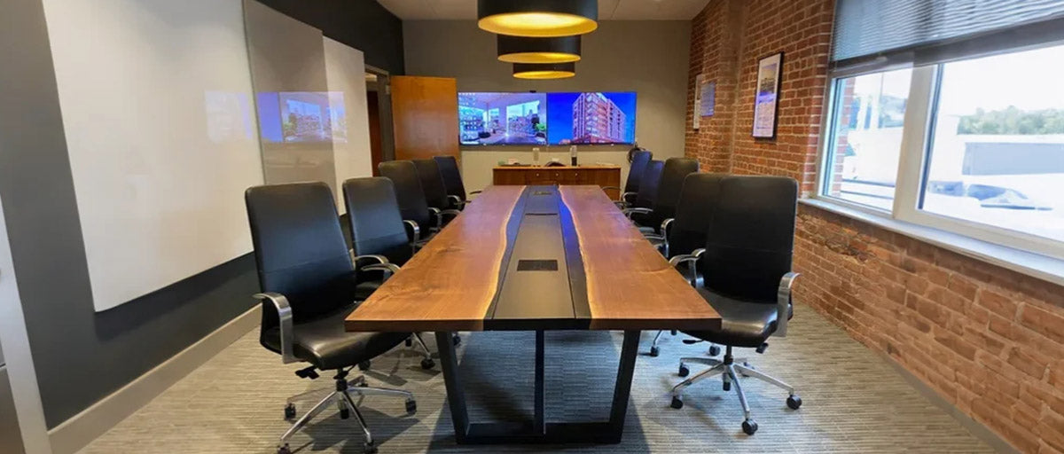 Transform your dining or meeting space with this handcrafted live edge black walnut epoxy river table, featuring a breathtaking ocean wave design. ...