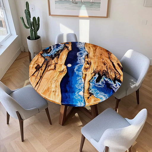 Bring the serenity of the sea into your home with this black walnut epoxy ocean table. Handcrafted by skilled artisans, this custom epoxy beach tab...