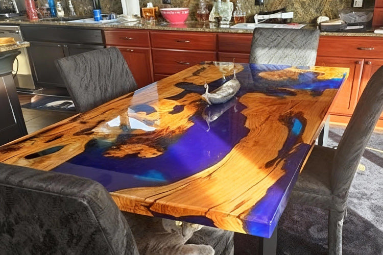 View full detailsElevate your space with this Golden Camphor Epoxy Ocean River Table, a custom oversized piece crafted from golden camphor slabs and deep blue resin...