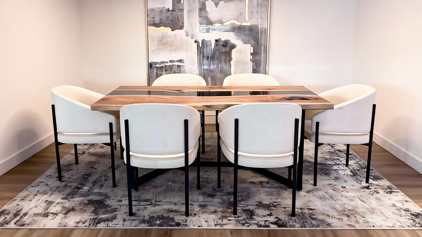 View full detailsHandcrafted from premium black walnut, this square epoxy dining table features a creamy white resin inlay and a modern minimalist design. Durable a...